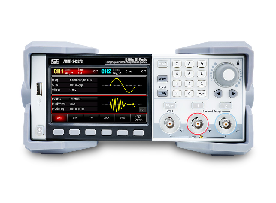 | Формы несущей | Синусоида, меандр, пила, произвольная, шум, импульс, гармоники | ||