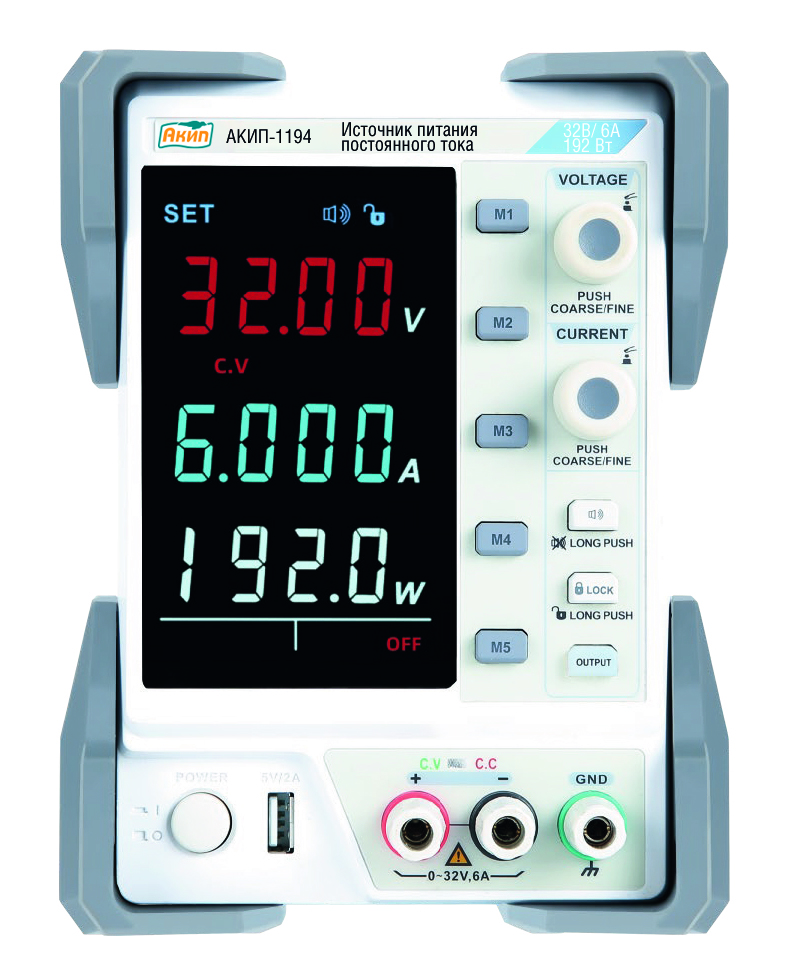 | Особенности | Одноканальный источник питания. Дискретность установки 10 мВ/ 1 мА. Встроенный 4-х разрядный вольтметр и амперметр. | Запись/ вызов профилей настройки – 5 ячеек (М1- М5). Дополнительный USB выход для питания и зарядки внешних устройств (моб. телефон, планшет). Порт аналогового программирования (I/O). Память состояния при выключении источника питания. |