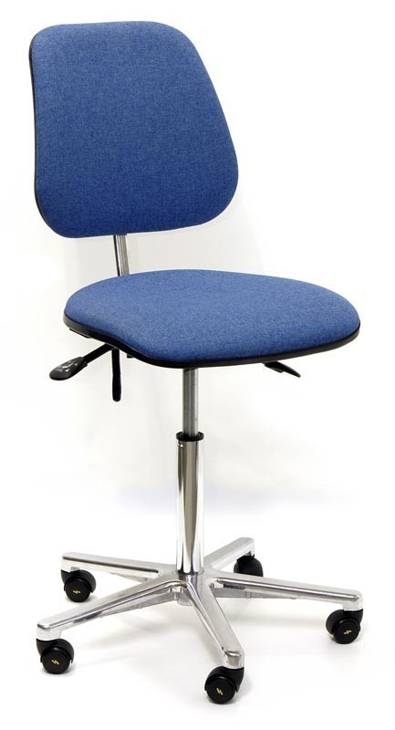Кресло антистатическое с большой спинкой. Предназначено для оборудования рабочих мест с невысокой подвижностью верхней части тела работника во время выполнения операций. Большая форма спинки обеспечивает дополнительный комфорт для спины во время работы. Регулировка по высоте для работы на уровне поверхности низких столов или низкого уровня размещения оборудования в условиях сидячей работы. 5-ти лучевое хромированное основание с пятью токопроводящими колесами. Регулировка высоты и угла наклона спинки. Пневматический подъемник 200 мм. Тканевая обивка. Цвет синий. Высота сиденья 500...690 мм.